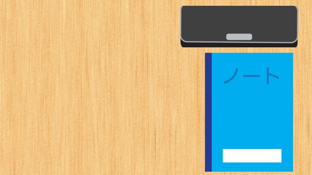印刷できたら、机の上に「プリント(授業ノート)」「筆記用具」を用意します。