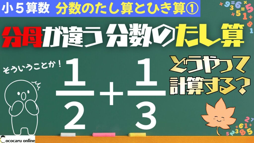 【動画】11-分数のたし算とひき算①「分母のちがう分数のたし算」