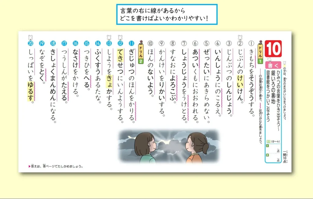 テストをしたら、漢字ドリルを開いて丸付けをしましょう。