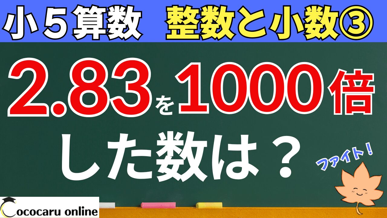 例:2.83を1000倍するとき、小数点を右に3つ動かすと「2830.」となり、末尾の小数点は不要なので「2830」と書きます。位が足りない場合は0を補います(例:2.8を100倍→280)。